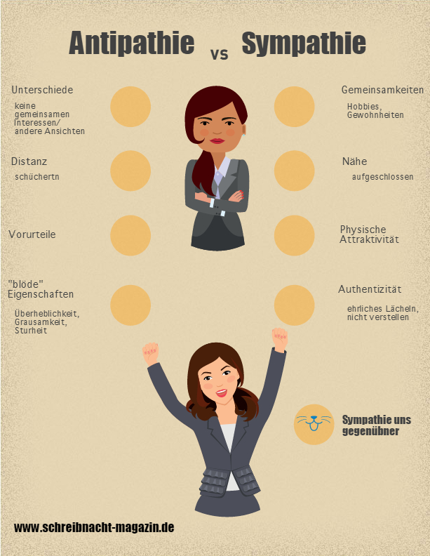 In letzter Zeit gab es viele Themen, die mich beschäftigten. So teilte ich beispielsweise die Aufregung darüber, dass einige Personen plötzlich die Meinung verbreiten wollten, dass SPler (Self-Publisher) nicht mit dem Niveau von Verlagsautoren mithalten können und einen „Markt für das Minderwertige“ geschaffen haben. Um nicht von der Allgemeinheit zu sprechen, hat man geschickt die Anklage auf die „schwarzen Schafe“ der Branche gelenkt, dennoch wurde ich das Gefühl nicht los, dass damit alle gemeint waren. Doch seien wir ehrlich, schwarze Schafe gibt es auch im Verlagswesen bzw. in jeder Branche. Aber HALT, dieses Thema hat es nicht in meine heutige Kolumne geschafft. Auch die Frage, wie die Gesellschaft sich hinsichtlich ihres Preisverhaltens entwickelt, soll heute nicht behandelt werden. Die kleine Abstimmung in der Facebook-Gruppe „schreibnacht.de“ hat ergeben, dass ihr nicht über 99 Cent-E-Books sprechen wollt, sondern über die Charakterentwicklung. Das Augenmerk dieses Kolumnenbeitrages liegt somit auf dem Konstrukt der Sympathie. Ihr wolltet von mir wissen, was eine Figur sympathisch macht und wann ein Charakter unsympathisch wirkt.